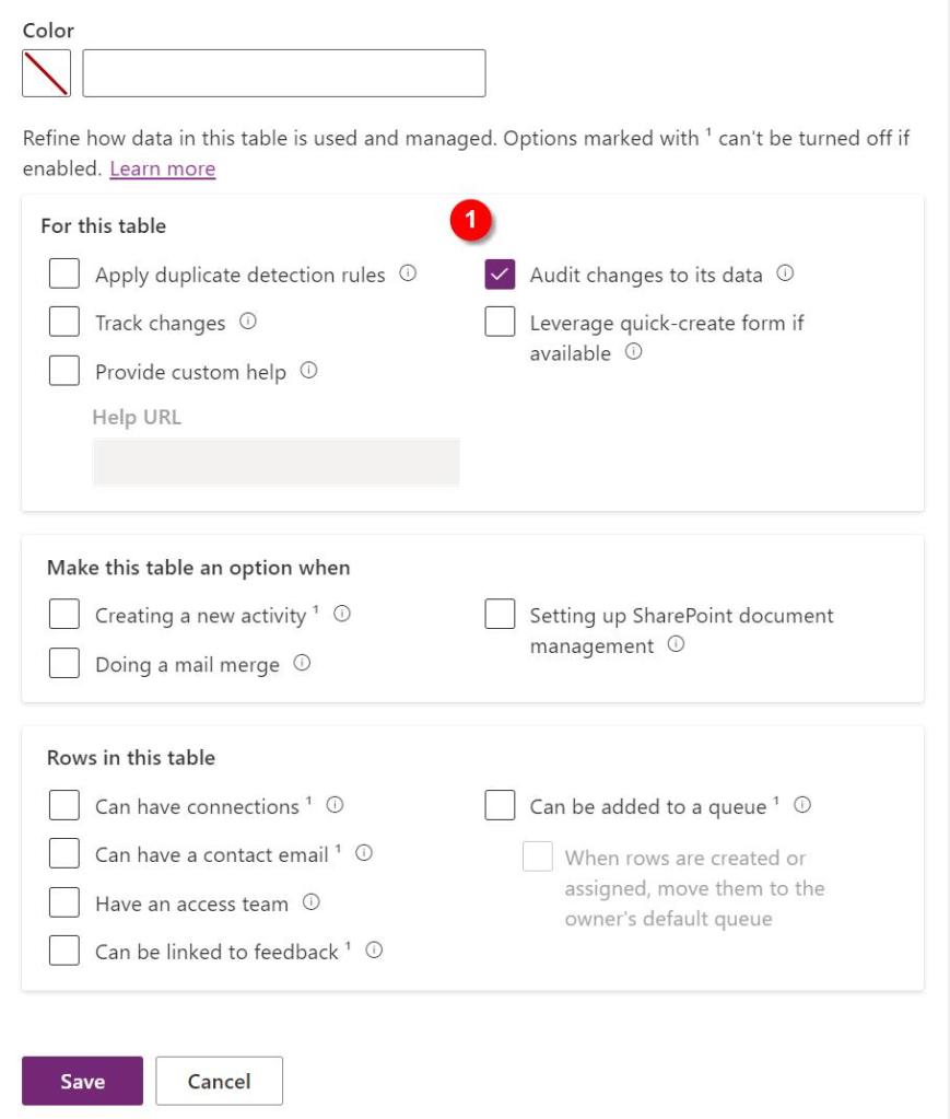 • consider checking the “Audit changes to its data” – this will likely come in handy during development and testing, as it will allow you to better understand what might have caused an error. To safe space, consider turning this off before releasing into PRODUCTION